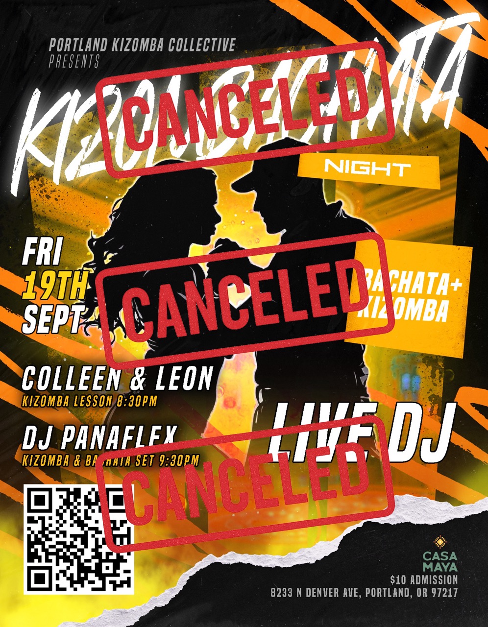 Due to unforeseen circumstances beyond our control, we regret to inform you there will be no KizomBachata event this month.