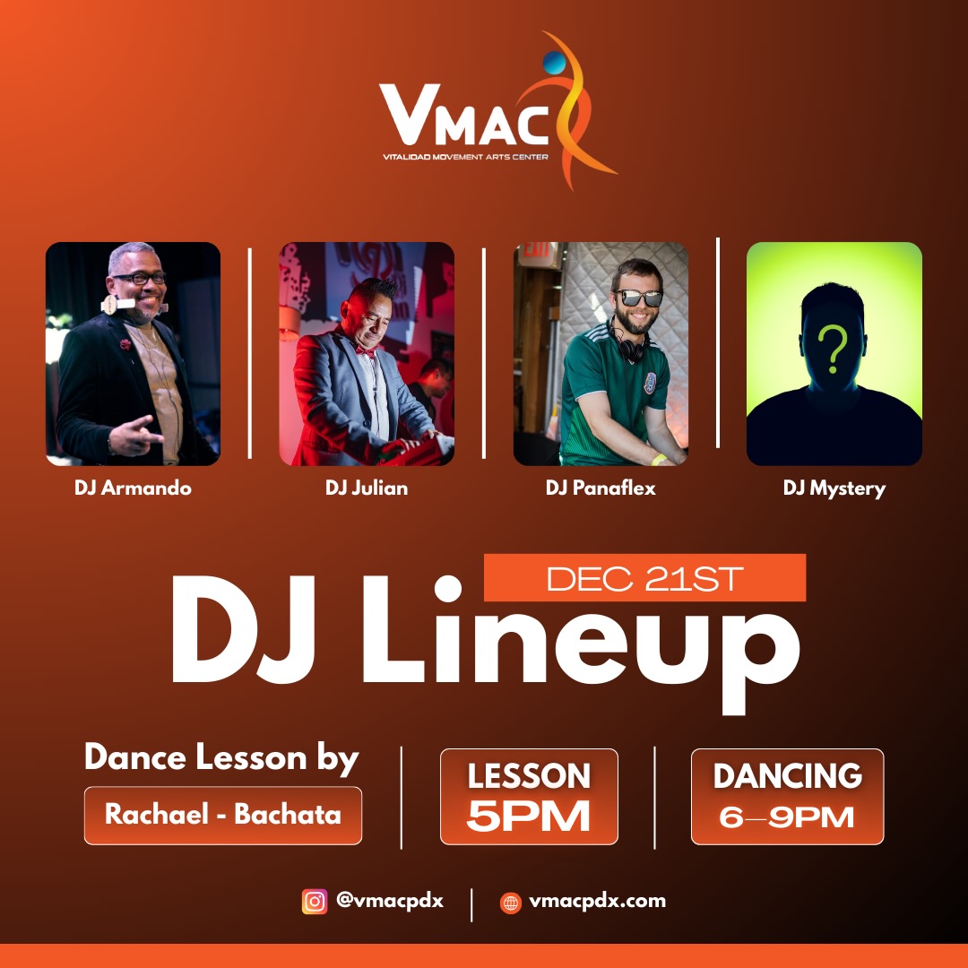As always VMACβS Dance Socials will be a relaxed atmosphere: daytime, all-ages, no alcohol, no judgment, no need to dress up; just tons of energy, sweat, and dancing! π